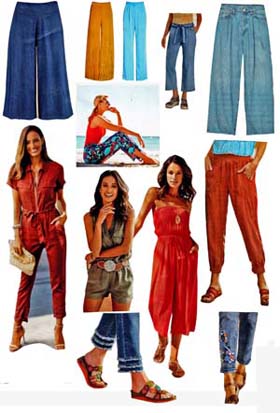 Higher-waist pants and jeans have caught on. Pull-on styles eliminate the bulky zipper that protrudes through knit tops.